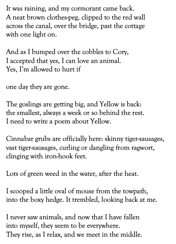 In the same way the poem is about the cormorant, the cinnabar moths, the mouse, the speaker, it is also about goslings, therefore ‘I need to write a poem about Yellow’ is immediately self-fulfilling. To what degree do you feel a poem can investigate a single non-human-species?