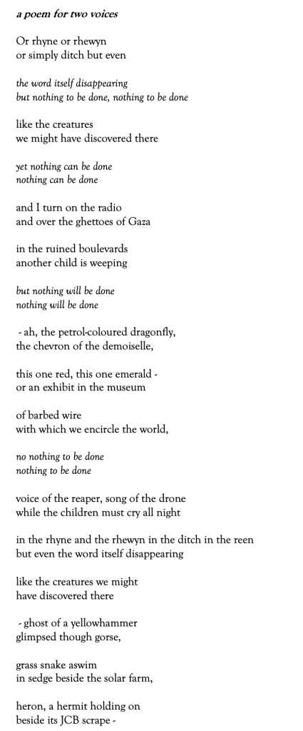 This exploration occurred at the same time as the ongoing struggle between Israelis and Palestinians, especially in Gaza. Personally I found combining in my writing the situations in both Gwent Levels and Gaza, quite natural.