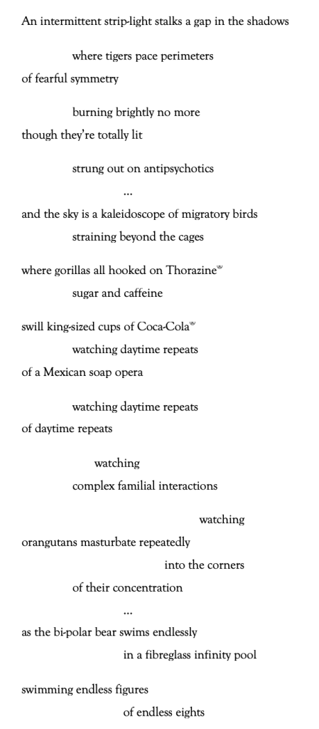 Using the awe of the more-than-human in Blake’s ‘The Tyger’ as a starting point to highlight how zoos ultimately diminish both sides of the human / non-human equation.